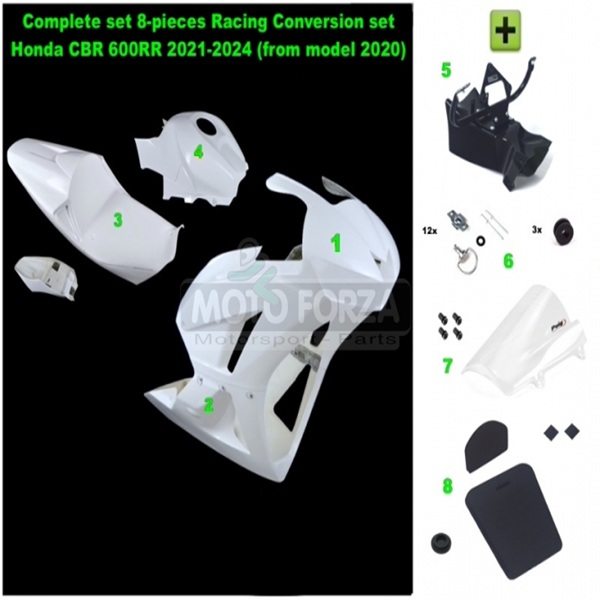 Kompletny zestaw 8-częściowy Racing Conversion Set Honda CBR 600RR 2021-2024 (od modelu 2020) zawiera:
